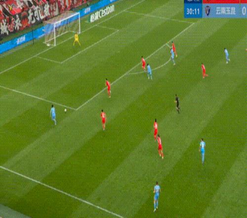 第61分鐘,約尼查角球開(kāi)到后點(diǎn),布爾克頭球攻門(mén)頂進(jìn),云南玉昆隊(duì)扳平比分。