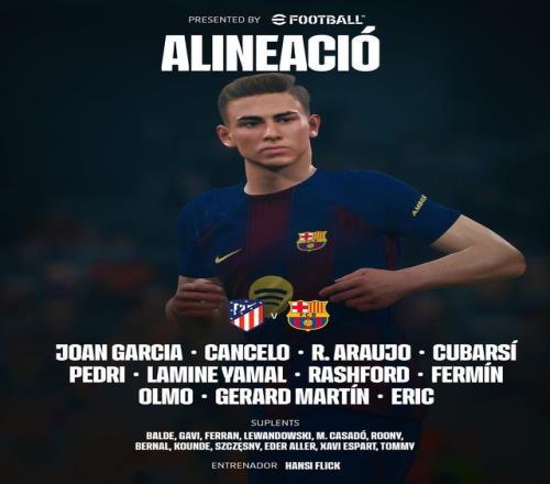 巴塞羅那首發(fā):13-霍安-加西亞、24-埃里克-加西亞、4-阿勞霍、5-庫巴西、18-赫拉德-馬丁、2-坎塞洛、8-佩德里、16-費爾明-洛佩斯、20-奧爾莫、14-拉什福德、10-亞馬爾