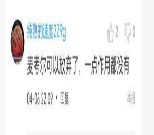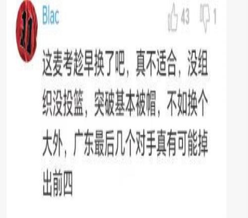 麥考爾嚴重拖了廣東隊的后腿,第二階段復出后,表現(xiàn)嚴重不如意,場均只得7.6分,真是太水了。球迷說,“麥考爾在場等于廣東隊4打5”、“受傷的麥考爾等來一個寂寞“、“麥考爾可以放棄了,一點作用都沒有”、“這麥考趁早換了吧,真不適合,沒組織沒投籃,突破基本被帽,不如換個大外”。今天這場比賽再次驗證明了麥考爾就是一人水貨,真的不必要留他在球隊了。你們說呢?