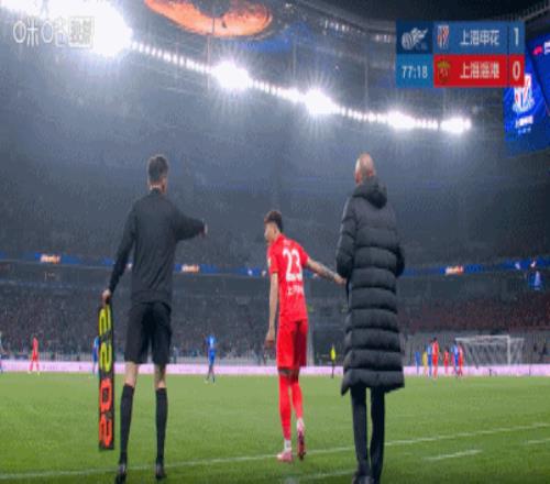 第78分鐘,海港第四次換人,裁判認(rèn)定楊世元頭部受傷,傅歡替補(bǔ)登場(chǎng)。