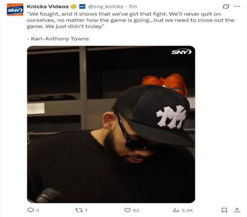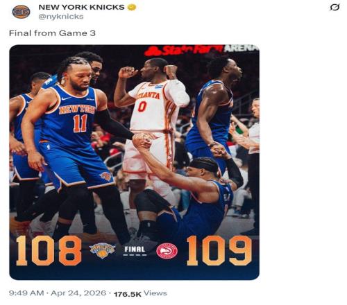 北京時(shí)間4月24日,NBA季后賽G3,尼克斯客場108-109惜敗老鷹,大比分1-2落后。作為東部第三的球隊(duì)已經(jīng)落后東部第六的球隊(duì),這支紐約尼克斯讓不少的球迷感到失望。此役尼克斯一度落后18分在末節(jié)完成反超,只可惜決勝時(shí)刻他們出了一些問題,終場前12秒尼克斯手握絕殺機(jī)會(huì)但卻失誤了。