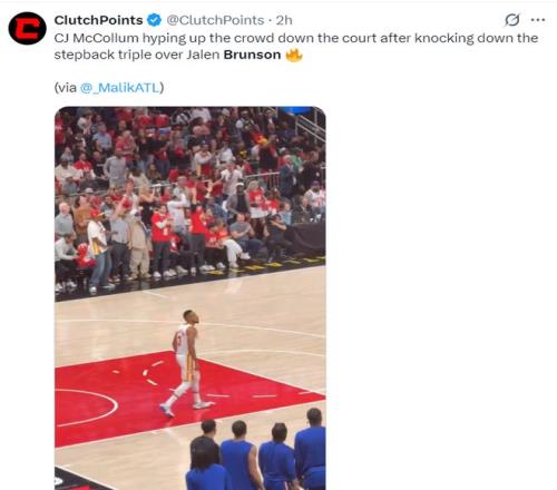這場比賽布倫森更是丟面到極致,他被麥科勒姆在臉上命中撤步三分,全場比賽他的效率也的確不如CJ,似乎CJ才是新的紐約之王,CJ還朝著尼克斯板凳怒吼。