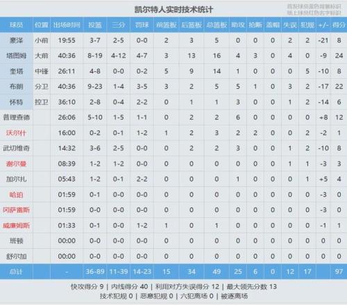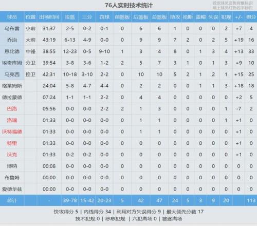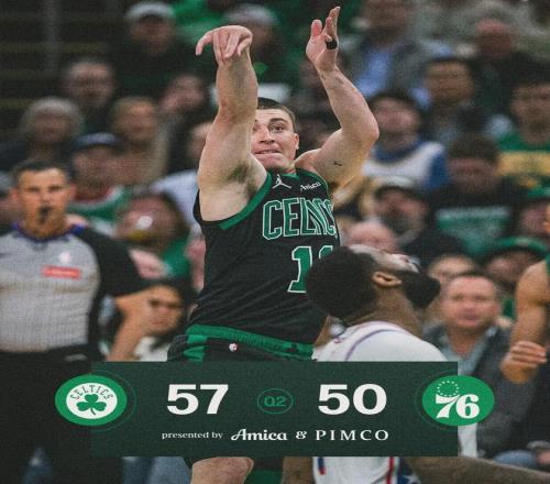 格萊姆斯18分2板、喬治16分9板7助2斷、埃奇庫(kù)姆10分7板3助!凱爾特人這邊,杰倫-布朗23投9中得到22分5板5助,第四節(jié)一直想造犯規(guī),可惜對(duì)手不上當(dāng)。塔圖姆19中8拿到24分16板4助3斷4失誤,懷特8中2僅得6分1板3助。