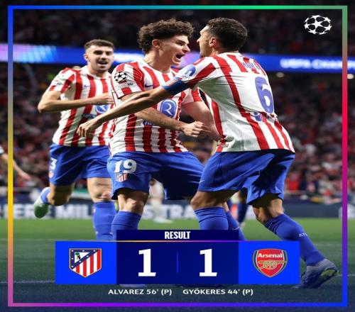 體育播報(bào)4月30日宣 本輪歐冠半決賽首回合,馬德里競(jìng)技主場(chǎng)1-1戰(zhàn)平阿森納。