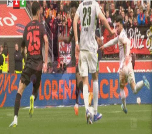 第90+6分鐘,打瘋了,馬里克-蒂爾曼輕松得分,勒沃庫森6-3