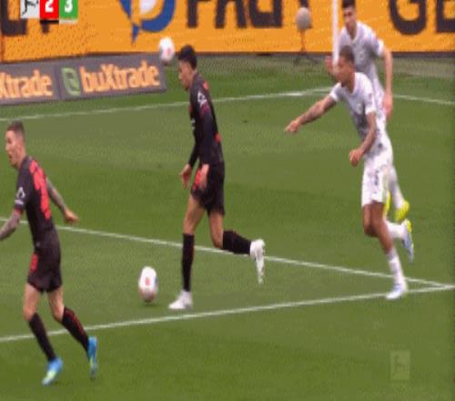 第44分鐘,格里馬爾多冷射完成雙響,勒沃庫森2-3