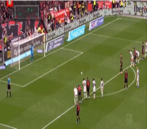 第53分鐘,內(nèi)森-特拉造點,??它c射扳平比分,勒沃庫森3-3