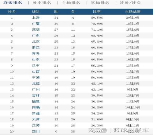 附:CBA積分榜最新排名