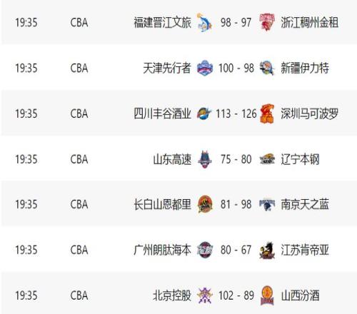 2025-2026賽季CBA常規(guī)賽進(jìn)入最后階段,本周一晚上迎來七場對決,事關(guān)季后賽的席位之爭,具體比賽結(jié)果如下: