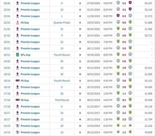 根據(jù)統(tǒng)計,曼城已經(jīng)在對陣伯恩利的連續(xù)14場比賽取得勝利,上一次沒能戰(zhàn)勝伯恩利還是17-18賽季英超客場1-1戰(zhàn)平對手,上一次輸球是14-15賽季英超客場0-1被擊敗。