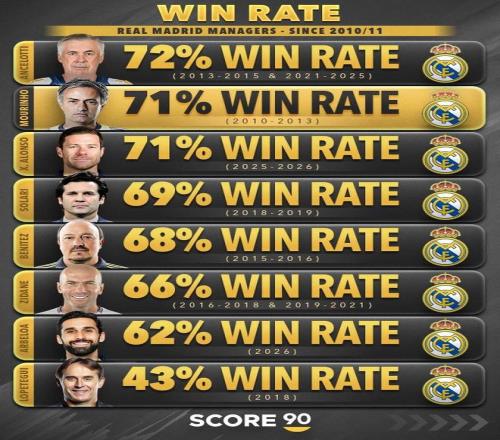 不過有個答案也許是出乎意料了。近日外媒score90在ins曬出穆里尼奧執(zhí)教皇馬時的勝率、和數(shù)字對比,并表示他目前是皇馬新帥熱門人選之一,對此伯納烏的老板們是認(rèn)可的,他跟伯納烏有過很親密的過往這也是他有機(jī)會回歸的資本。