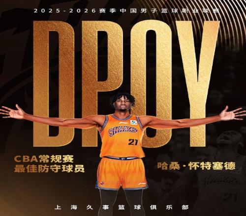 體育播報4月26日宣 CBA官方公布了2025-26賽季的常規(guī)賽最佳防守球員,上海男籃外援懷特塞德當(dāng)選。