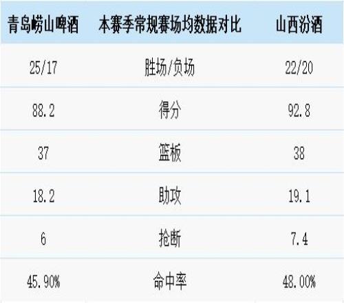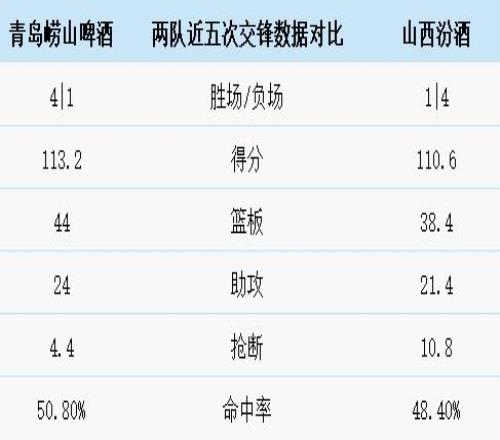 青島嶗山啤酒與山西汾酒歷史上一共交手42次,青島嶗山啤酒17勝25負。