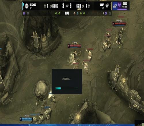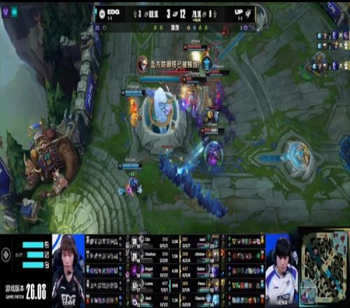 暫停回來UP中路推進,Hena伊澤瑞持續(xù)輸出擊殺Xiaohao趙信,Leave狂A無濟于事,UP打出0換2,一波推平EDG基地扳回一城。